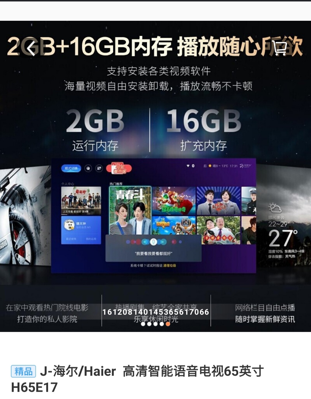 J-海尔/Haier 高清智能语音电视65英寸 H65E17