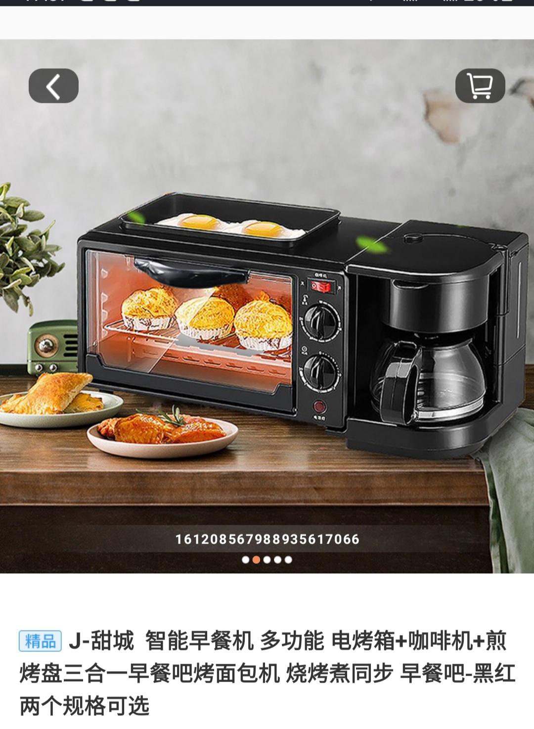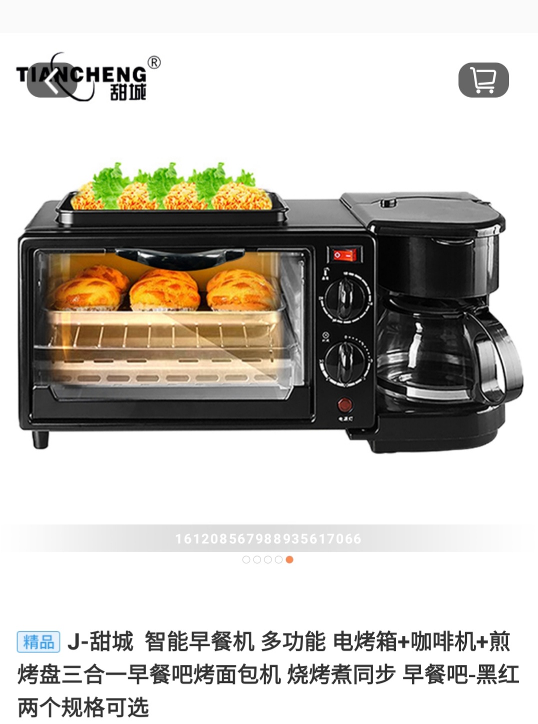 J-甜城 智能早餐机 多功能 电烤箱+咖啡机+煎烤盘三合一早餐吧烤面包机 烧烤煮同步 早餐吧-黑红两个规格可选