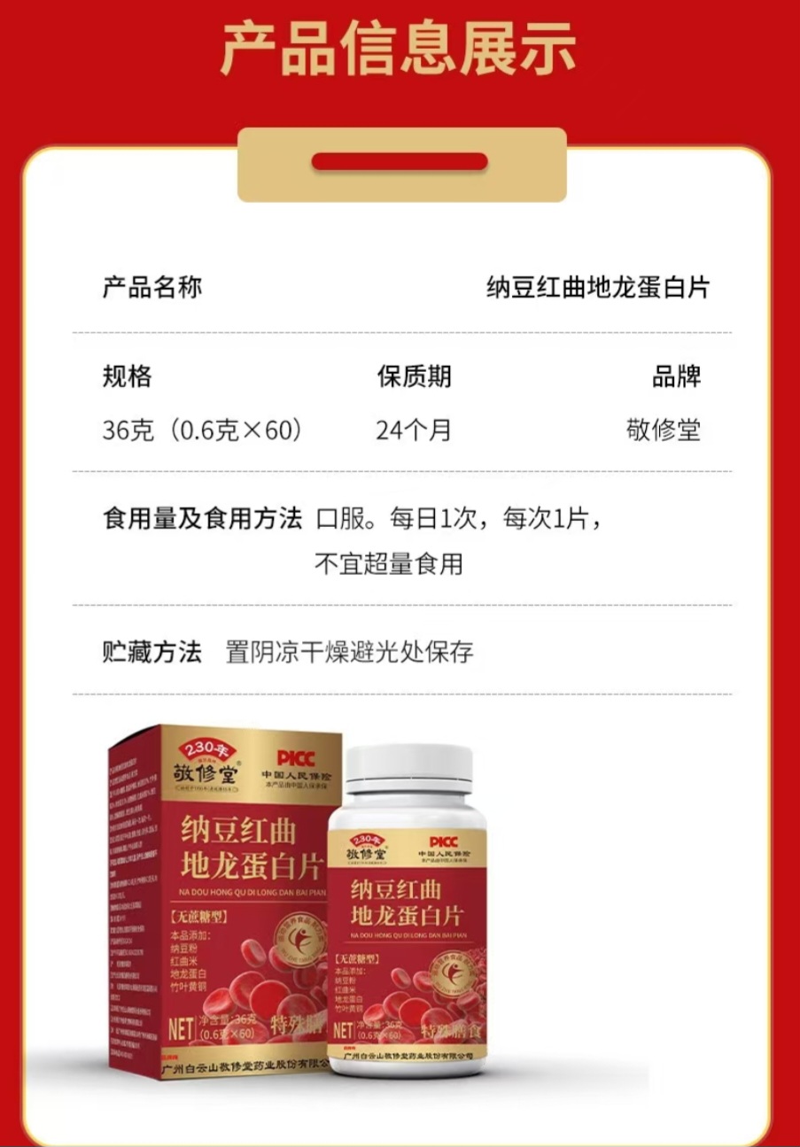 纳豆红曲地龙蛋白片