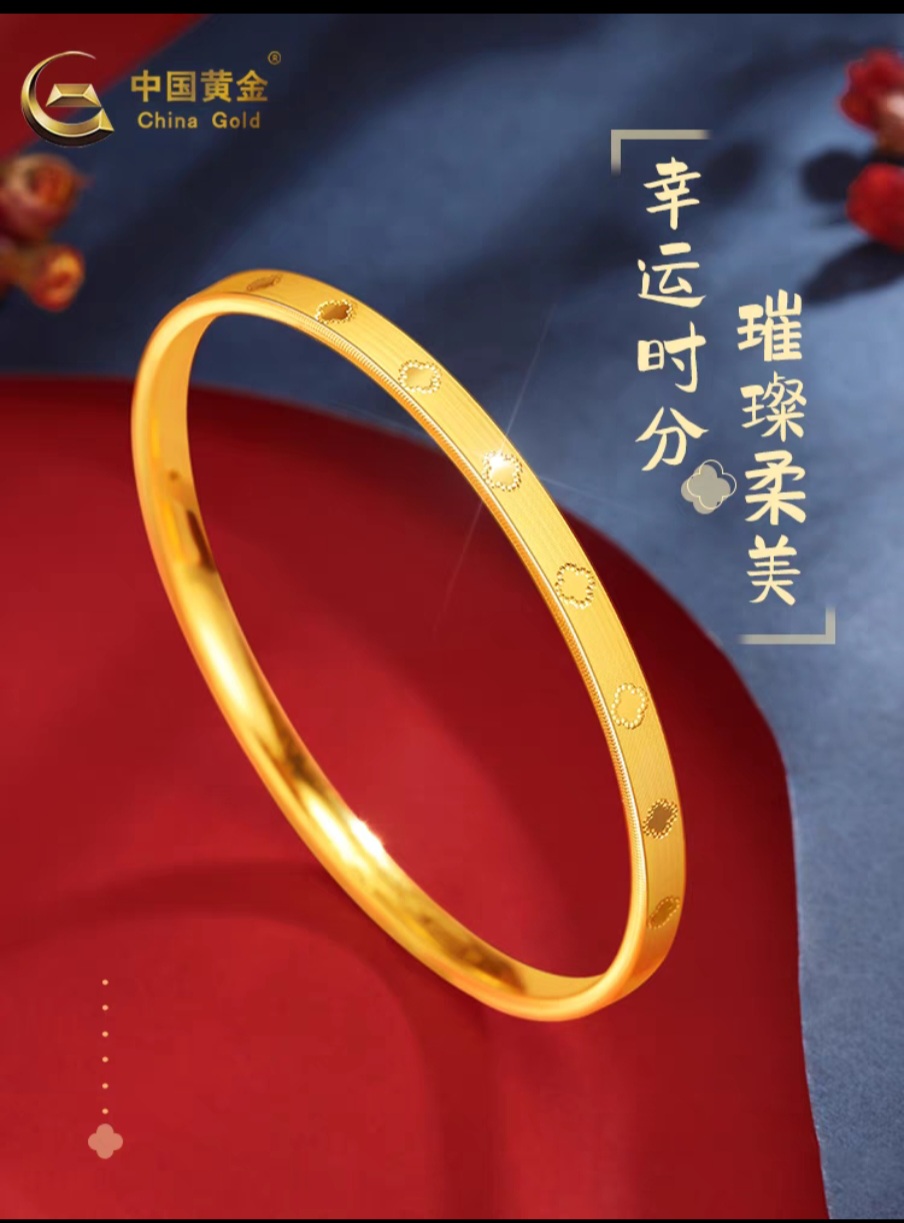中国黄金 四叶草黄金手镯女新款足金方镯纯金镯子女士手饰送女友