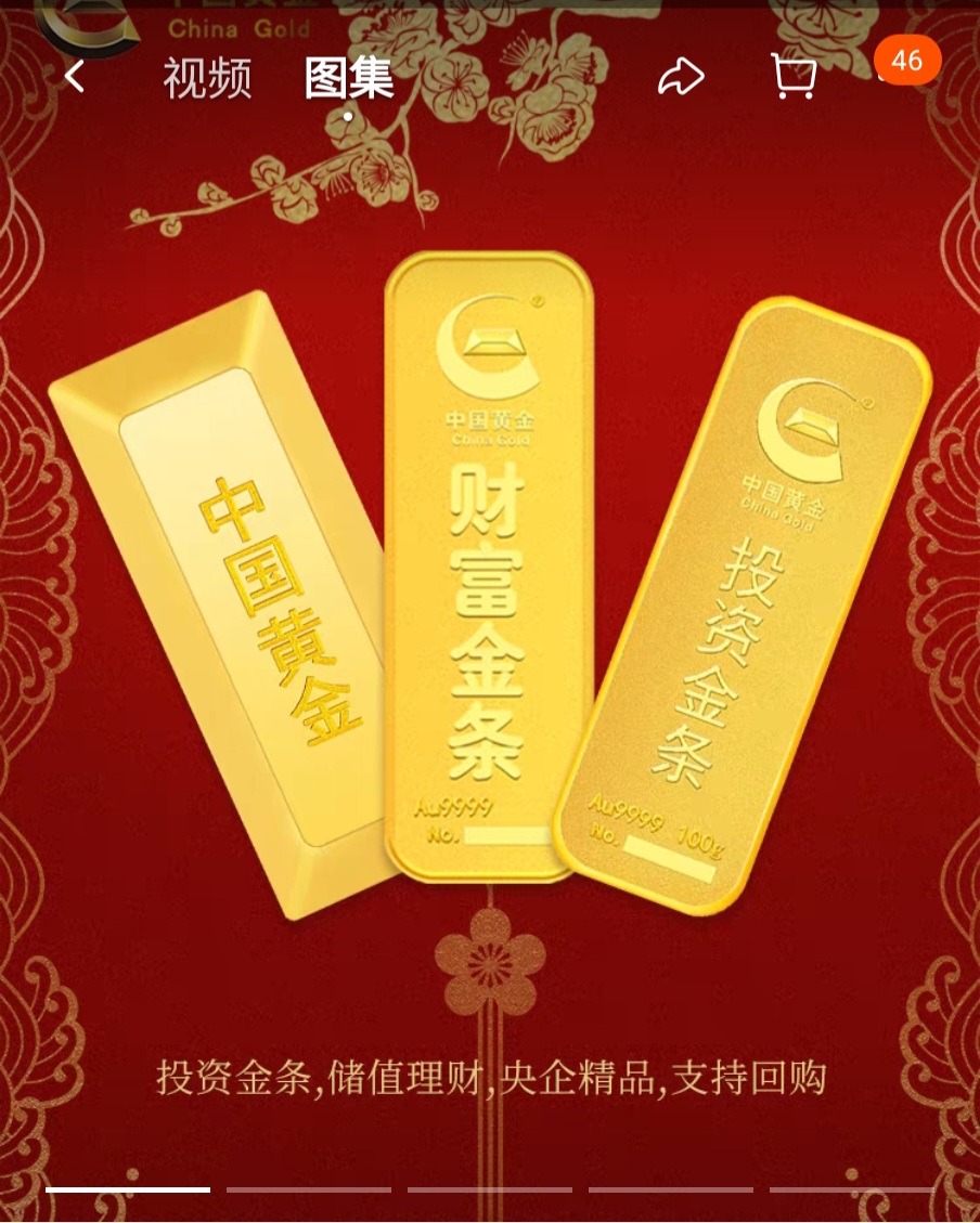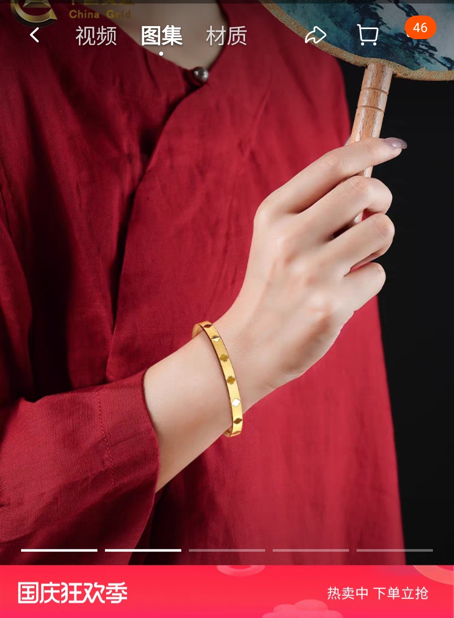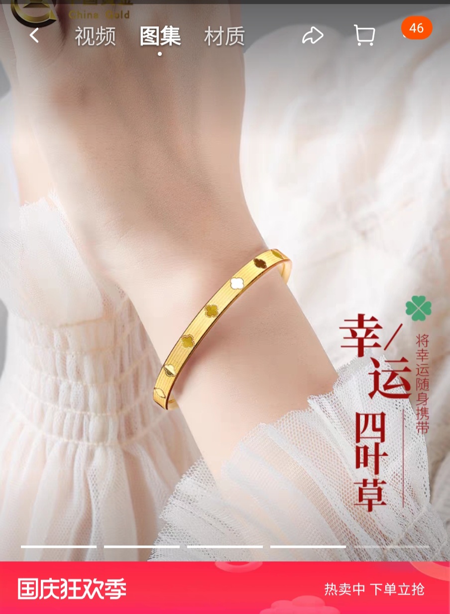 中国黄金 四叶草黄金手镯女新款足金方镯纯金镯子女士手饰送女友 中国黄金 官方金条10g金砖50g财富投资100g足金au9999黄金储值